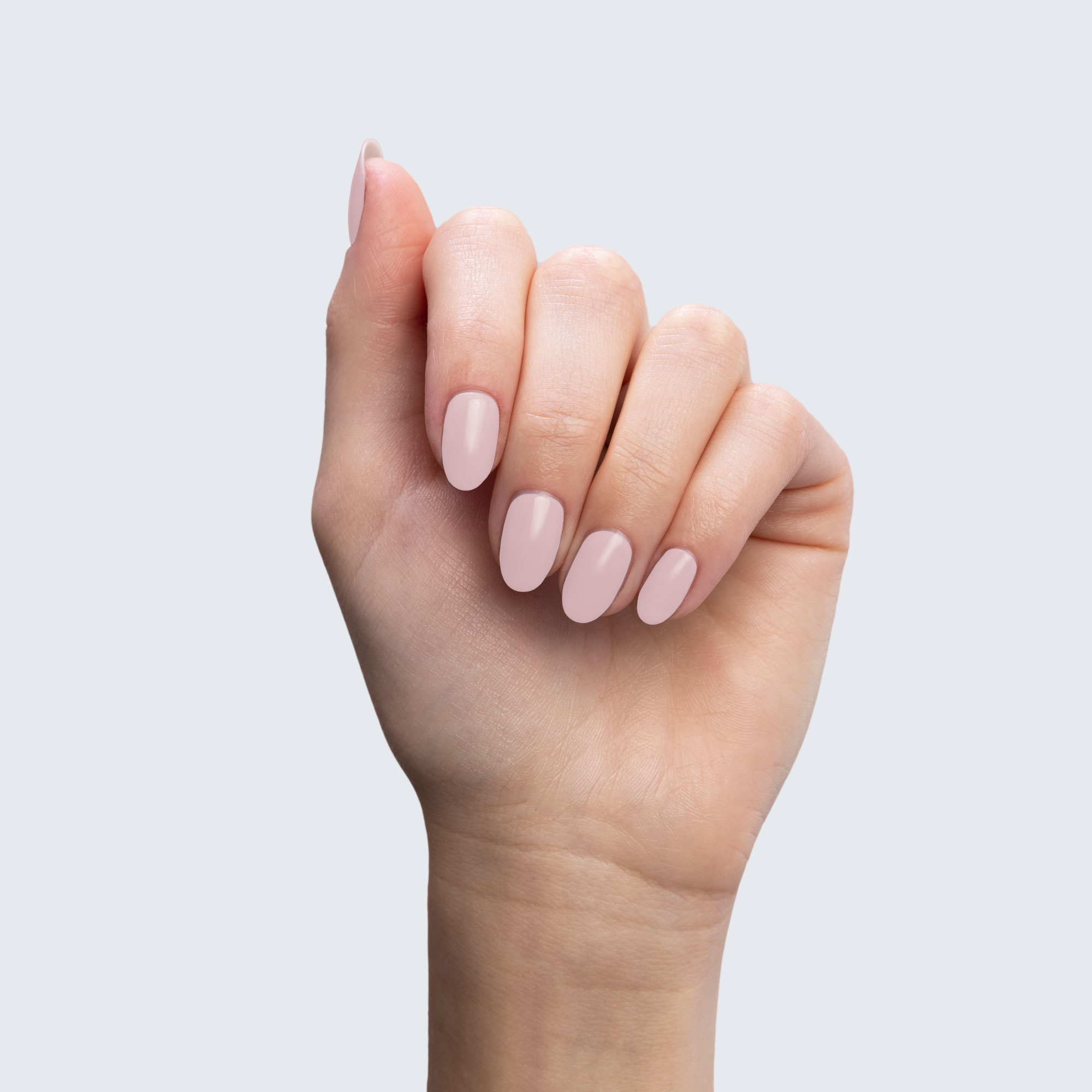 Dusty pink. Light. Muted. Opaque. Warm undertone.